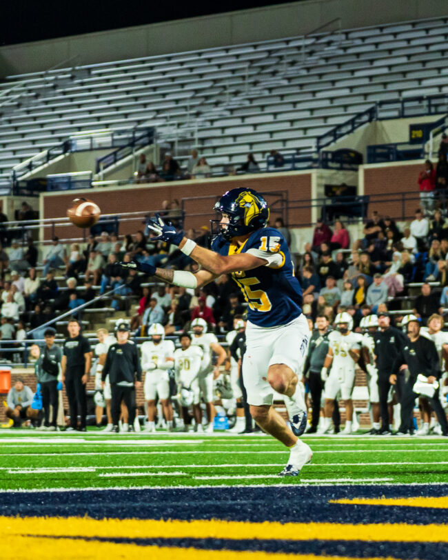 Schuman had his third 100+ yard game this season with 200 yards and 2 touchdowns. He is also the previous Mid-America Intercollegiate Athletics Association (MIAA) freshman of the year and is looking to become the MIAA Offensive MVP of the year.