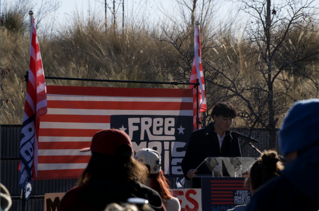 High school student speaks at the Free America Rally in Scissortail Park, Jan. 20 (Cameron Estes/The Vista)