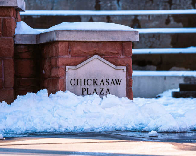 Chickasaw Plaza enveloped in snow (Hunter George/ The Vista)