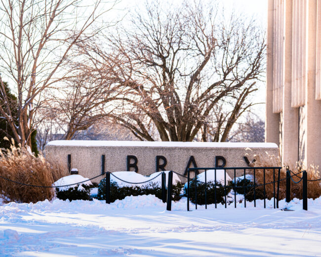 Chambers Library after snow storm (Hunter George/ The Vista)