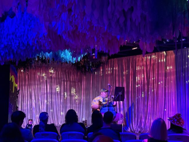 Mic Night takes place on the Wonder Stage inside the Mix-Tape immersive art experience. It’s currently decorated resembling a whimsical, Seuss-esque ocean floor with plenty to keep your eyes busy.