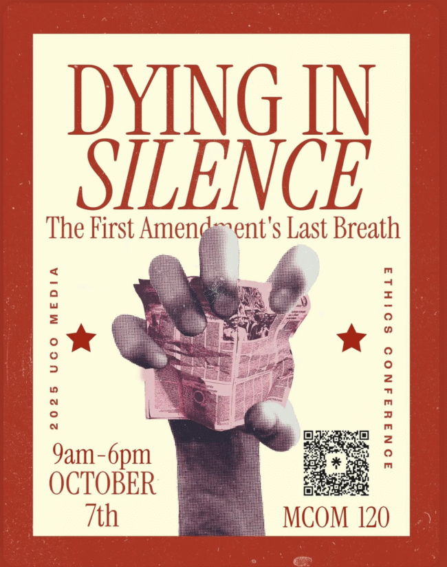 The University of Central Oklahoma will host Dying in Silence: The First Amendment’s Last Breath on Tuesday, Oct. 7, from 9 a.m. to 6 p.m. in MCOM 120.