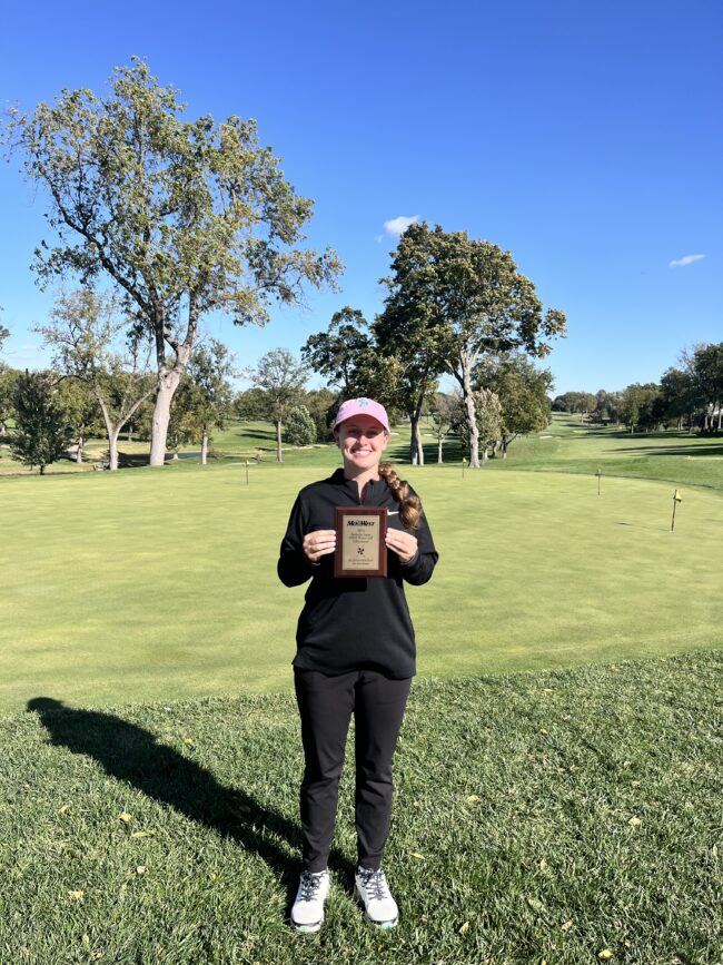 Freshman Grace Hall tied for third individually for the Bronchos, with rounds of 77 and 75 for an 8-over-par 152. Later in the week, she was named Mid-America Intercollegiate Athletics Association (MIAA) Women’s Golf Co-Athlete of the Week.